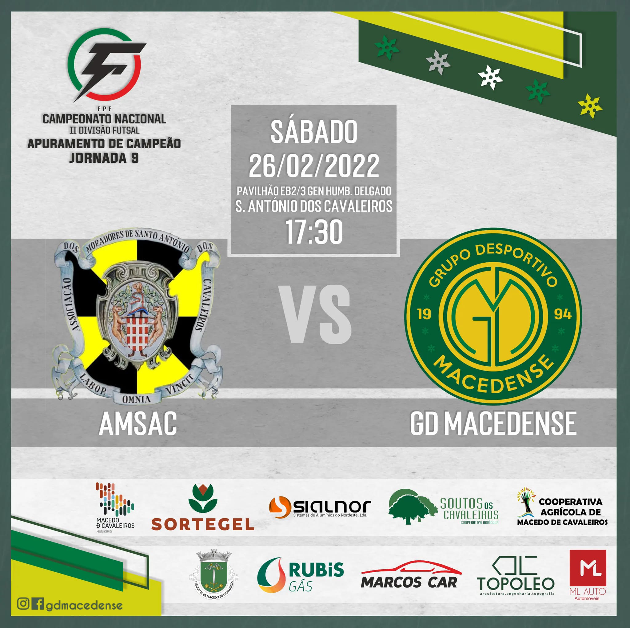 É com o AMSAC que o Grupo Desportivo Macedense defronta a jornada 9 da fase de Apuramento a Campeão da II Divisão Nacional de Futsal.
