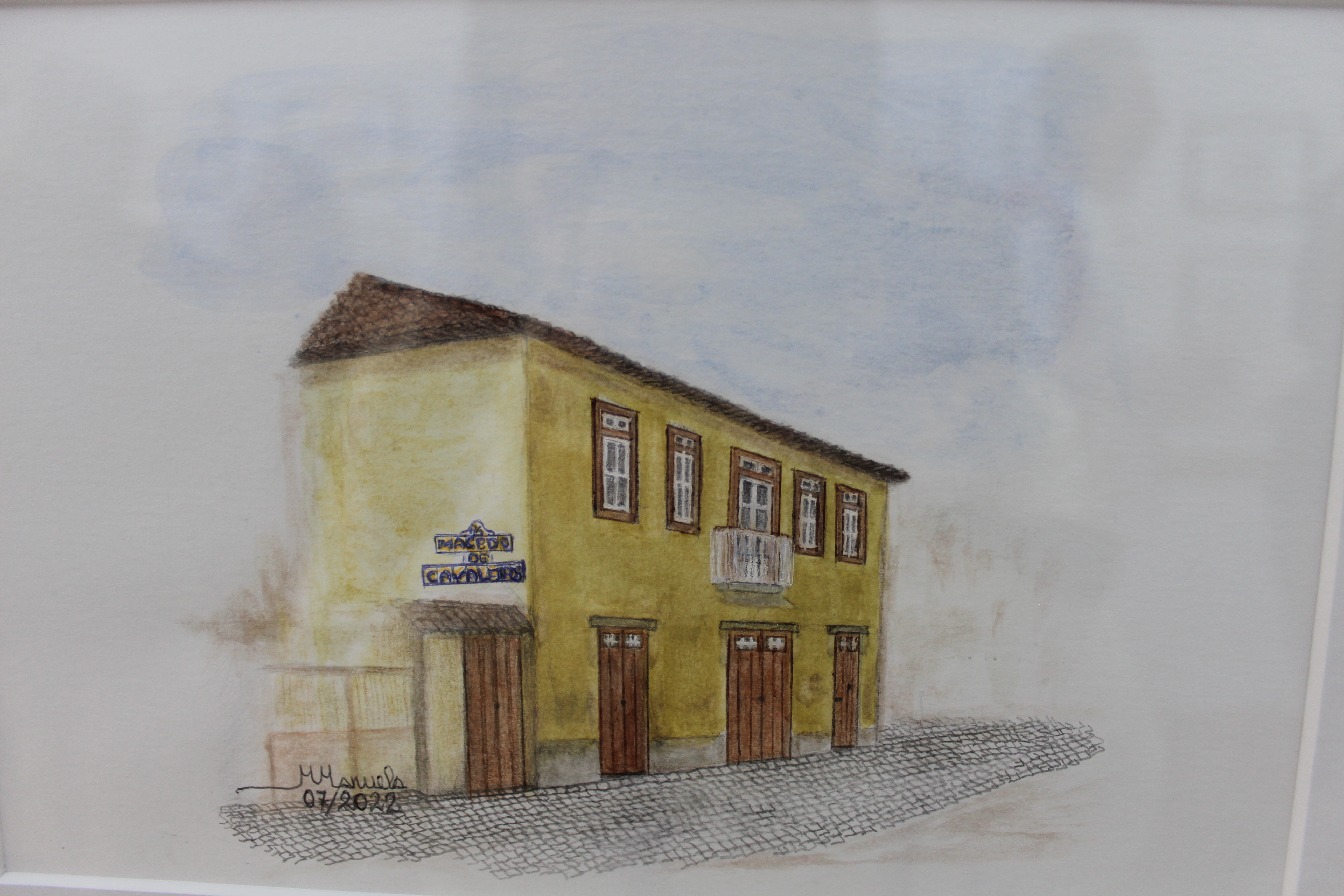 “O meu marido tirou bastantes fotografias de casas antigas de Macedo de Cavaleiros e durante o confinamento, como não havia muito para fazer, fui pintando as casas das quais eu já gostava muito porque quando o meu pai era vivo, passeávamos muito e ele ia-me dizendo de quem eram as casas. Em muitas outras brinquei dentro porque tinham crianças da minha idade.