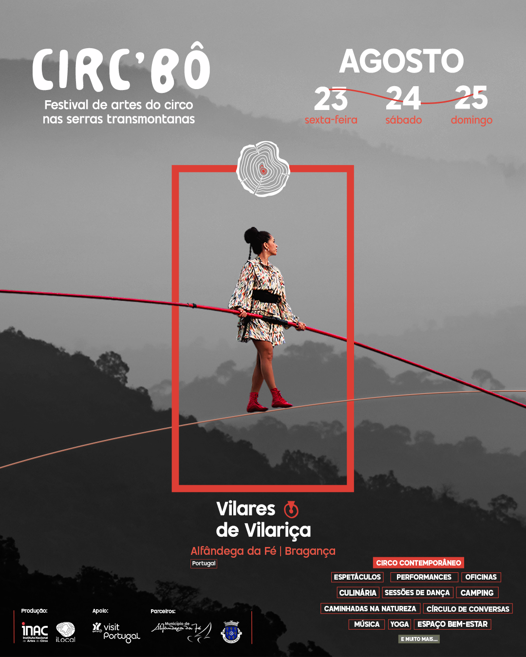 Para além de outra forma de mostrar o melhor do circo dos dias de hoje, o festival vai contar com atividades paralelas como performances, oficinas, sessões de culinária, de dança, música, yoga, círculo de conversas, caminhadas na natureza, e ainda com a Barragem da Burga ali tão perto. Para além de Vilares da Vilariça, no concelho de Alfandega da Fé, a mostra de circo contemporâneo ocorrerá também em municípios vizinhos, como Macedo de Cavaleiros, Torre de Moncorvo e Mogadouro. O festival Circo Bô é uma parceria entre a iLocal e o INAC – Instituto Nacional de Artes do Circo, com o apoio do Turismo de Portugal.