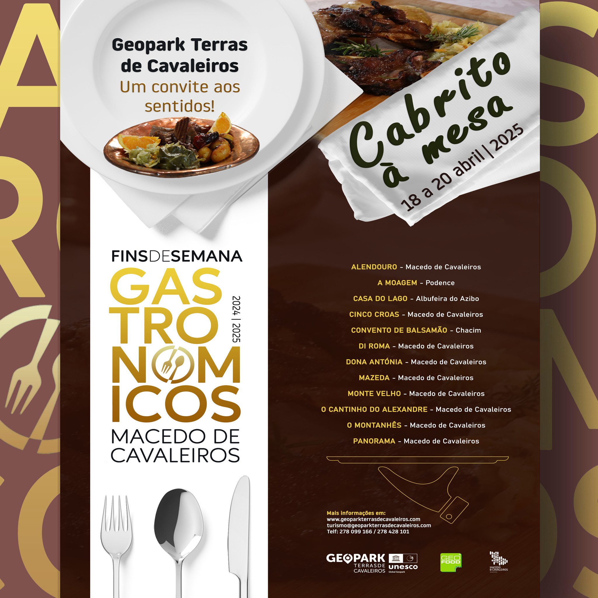 Prepare a data e fixe já na sua agenda, que 18 a 20 de abril, vai decorrer o último fim de semana gastronómico “Cabrito à mesa”, em 13 restaurantes aderentes do concelho de Macedo de Cavaleiros.