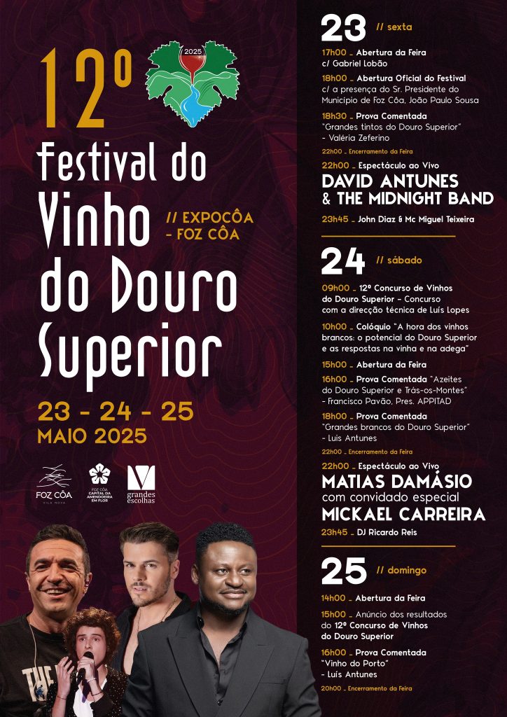 O cartaz do Festival do Vinho do Douro Superior já foi divulgado e conta com artistas como Matias Damásio, Mickael Carreira e David Antunes & The Midnight Band.