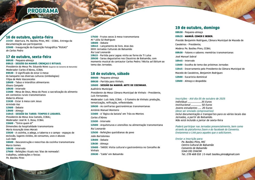 A 28.ª edição das Jornadas Culturais de Balsamão já têm data. Vão acontecer de 16 a 19 de outubro, em Chacim, no concelho de Macedo de Cavaleiros, que este ano tem como tema “À Mesa Transmontana”.
