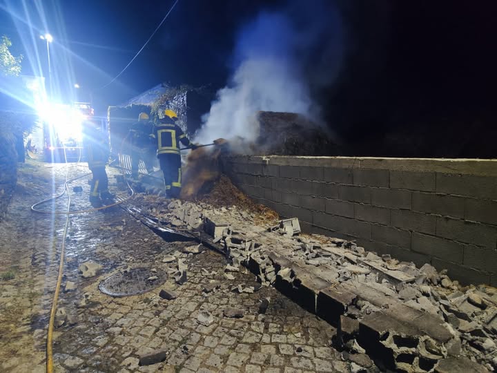 Estão ainda a decorrer as operações de retirada do combustível (palha). O alerta para o incêndio ocorreu, às 03,43 horas da manhã, desta quinta-feira, e para o local foram mobilizados 14 bombeiros com o apoio de seis viaturas. A tomar conta da ocorrência esteve uma equipa de militares da GNR.