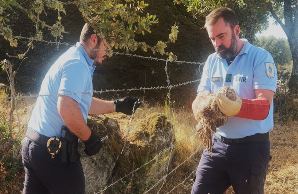 GNR resgata coruja-do-mato presa em arame farpado